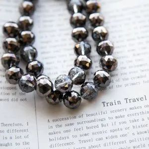 бусина, стекло 14, граненая, цвет прозрачный гематитовый, 14 мм