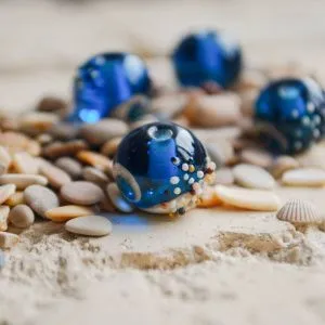 бусина, мурано "пляж синий", круглая,13x11 мм